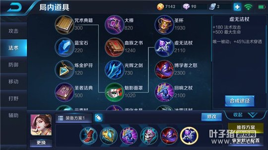 后期:到了后期需要提升武则天的法术攻击和法术穿透,博学者之怒和虚无法杖就是非常不错的选择。博学者之怒自身有着不错的法术攻击加成,其唯一被动毁灭还可以按照一定比例增强武则天的法术攻击,让武则天的技能伤害可以更高;虚无法杖则是可以为武则天提供较高的法术穿透加成,能让武则天在后期团战中打出爆炸的输出伤害效果。
