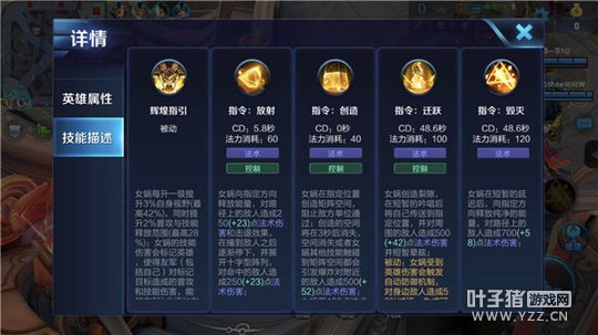 被动技能——辉煌指引:被动技能逐步增加了女娲的输出范围和视野,变相提高了自身的生存能力。施放技能时的标记效果,能提升队友的移动速度和生命回复,提高了全队的机动性和存活能力。