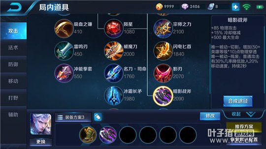 影忍之足能够提高铠的物理防御,并且还可以为铠增加移动速度,让铠的机动性提高,暗影战斧则能够为铠增加最大生命以及减少技能冷却时间并且还会为铠增加一定量的物理穿透效果,当铠使用普通攻击对敌人造成伤害时,借助暗影战斧的效果还可以让敌人有一定几率减速,一旦敌人减速,铠就可以利用二技能有效的牵制敌人,同时借助暗影战斧为自身增加的强大物理攻击在短时间内对敌人造成大量的伤害,从而能够使铠更加有效的击杀敌人。