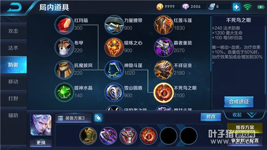 反伤刺甲可以为铠增加相当不俗的物理防御,同时还可以为铠增加一定量的物理攻击,可以让铠在中期与敌方物理输出英雄作战时,将自身的消耗降到最低,并且敌人对铠造成的物理伤害还会呈现一定百分比的法术伤害返还给敌人,不死鸟之眼可以提升铠的法术防御,并且还能够增加铠的最大生命,被动效果当铠在血量低于一定程度时,若是受到治疗效果将会得到增强,在自身血量较低的情况下,利用一技能命中敌人之后为自身回复的血量,结合不死鸟之眼的被动效果,可以让铠的对线作战能力瞬间提升,从而能够使铠有更多的几率将敌人击杀。
