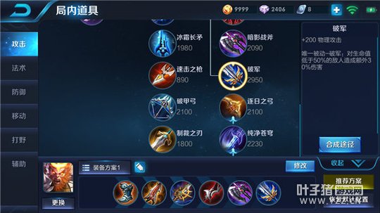 暗影战斧可以提高孙悟空的最大生命以及为孙悟空减少技能冷却时间,当孙悟空用自己的平A攻击敌人时,还会有一定几率将敌人减速,从而能够让孙悟空更加有效率的牵制敌人,暗影战斧还可以为孙悟空提供物理穿透效果,让孙悟空即使面对坦克英雄,也可以在短时间内对其造成非常恐怖的伤害,破军可以为孙悟空增加高额的物理攻击,并且孙悟空一套输出打出去后期可以轻松将脆皮英雄打掉一半血量,此时破军的被动效果就会显现出来,能够让孙悟空攻击血量低于一定程度的敌人时,自身的攻击附加一定百分比的伤害。
