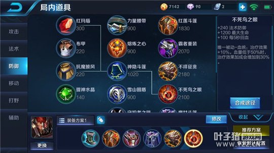 六神装推荐:抵抗之靴+红莲斗篷+反伤刺甲+魔女斗篷+不祥征兆+不死鸟之眼