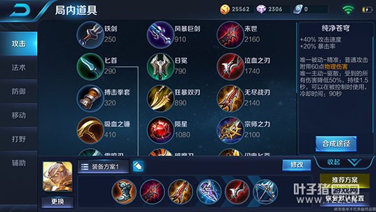 建议出装:急速战靴、末世、无尽战刃、闪电匕首、破军、破甲弓