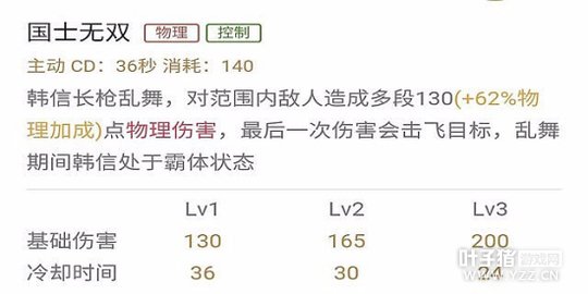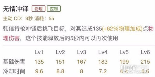 数值分析:大招为韩信提供了一次免控机会,而且大招的基础伤害和冷却时间随技能等级提升而成长较多,建议有大点大。