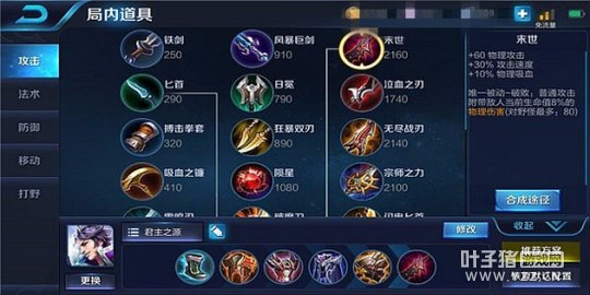 出装推荐:巡守利斧+急速战靴+泣血之刃+暗影战斧+无尽战刃+纯净苍穹