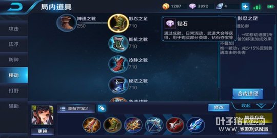 影忍之足:主要提高移速,降低敌人普攻的伤害,增加保命能力。当然也可视英雄阵容来选择鞋子的出法,若是对面控制类英雄较多,换成抵抗之靴也很有必要。