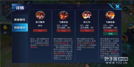 技能解析:娜可露露向前冲刺,对路径上的敌人造成物理伤害,每命中一个英雄将回复250(+100%物理加成)自身生命值,二技能是一个恢复技能,不仅能打出伤害还能提高自己的持续作战能力,增加了在团战中的生存能力。