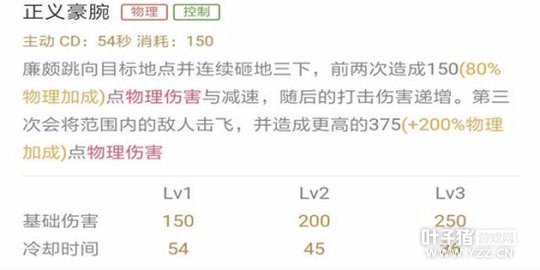 数值分析:该技能拥有1.0的物理攻击力加成,但基础伤害较低,对于出肉的廉颇来说,不宜主加。