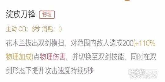 短剑形态数值分析:被动的伤害是跟随着花木兰的攻击力所成长的,花木兰的输出装越多,被动伤害越高。