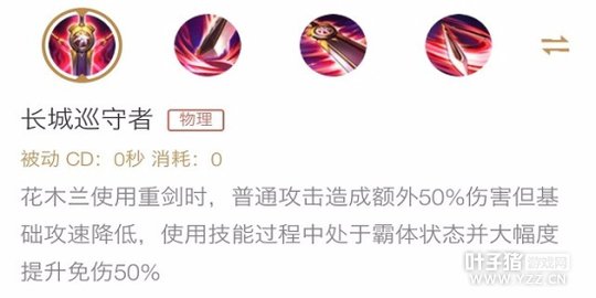 重剑形态数值分析:重剑形态下被动的伤害也是随着花木兰的攻击力所增加的,虽然免伤的额度是一成不变,但50%的的免伤也让花木兰能抗住更多的伤害。