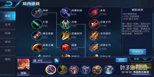 提高了法术防御以后继续考虑护甲的高度,身为刺客主要攻击对象还是射手,那么不祥征兆的受攻击减少攻击者的攻速和移速肯定是一个不错的选择。