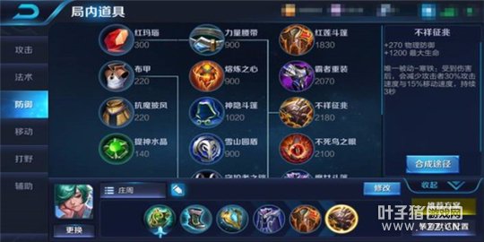 出装详解:第一件装备庄周可以选择出救赎之翼,这件装备在前期的作用很大,有了它庄周可以配合保护队友入侵野区或者越塔强杀敌方英雄。第二件装备庄周要出抵抗之靴,这件装备的选择也是看玩家个人选择,影忍之足可以帮助庄周抵抗更多物理伤害,抵抗之靴可以抵抗更多魔法伤害,并且使庄周在团战中更加来去自如。第三件装备当然就是性价比最高的装备极寒风暴了,这件装备的属性不用多说,既减少CD还增加物理防御,被动还可以减速敌人,非常适合庄周搭配二技能使用了。接下来就可以出魔女斗篷了,因为庄周作为辅助还是需要为后排适时抗一些伤害的,例如嬴政的大招之类的魔法伤害。这个时候魔女斗篷最适合不过了。第五件装备可以选择加强了的红莲斗篷,这件装备不仅伤害增加了,并且还是那么便宜,很利于庄周在后期团战和后排一起收割残局。最后一件装备当然可以根据局势来出了,一般最好的是出不祥征兆或者贤者的庇护,前者受到攻击后会减速敌人移速和攻速,后者直接原地复活。