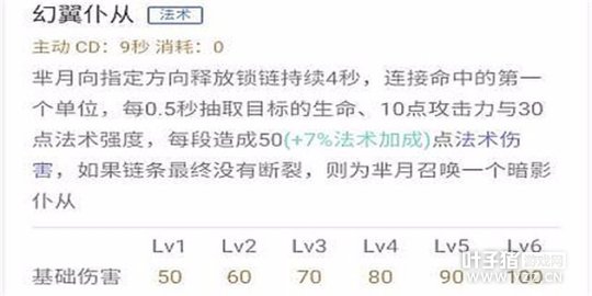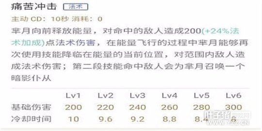 数值分析:这个技能随着等级提升提高不俗的基础伤害,作为芈月核心消耗技能,建议主加。在出装方面选择痛苦面具,触发被动效果达到消耗敌方的作用。
