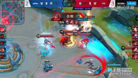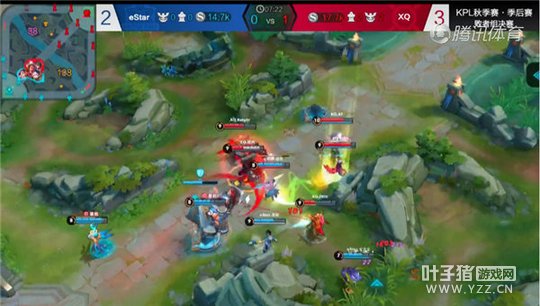 中期虽然双方一直僵持不下,但是XQ的团队稳稳的推塔,同时也攻陷了eStar的野区。