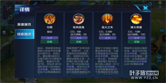 向指定方向发出东风,加速沿途上的友军,减速敌军。并且作用火区1.5秒后,会沿着风向生成新的火区(最多5个)。是团战周瑜火区到处覆盖的重要技能。并且敌人在身边时释放技能,能够将敌人击退,并且造成伤害。敌人准备近身不要着急放技能加速逃跑。等到他近身后将他吹开才是最安全的做法。