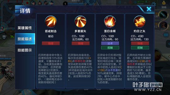 被动技能提高了后羿的输出伤害,当其普攻命中敌人后除了能够增加自身攻速外,只要攻速叠加到三层,后羿的普攻就可以射出三支箭矢。玩家可以利用这一特点提高后羿的清线效率和爆发输出,搭配暴击和物理穿透属性的装备能够将后羿的输出伤害最大化。