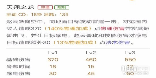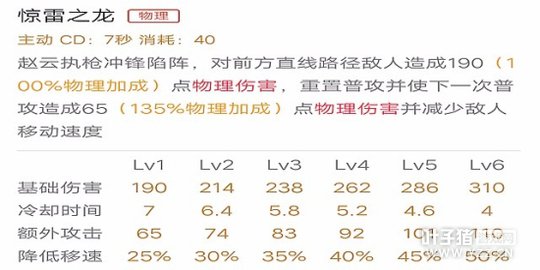 技能解析:此技能大大的增加了赵云的机动性,并且击飞效果可将要逃跑的敌人留住,击中敌人后的攻击增加法术伤害,使赵云能后在短时内击杀敌人并逃跑。