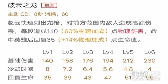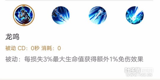 技能解析:被动技能注定了赵云越战越勇的特点,血量越少免伤就越高,在对敌过程中可利用被动将敌人“风筝”死。