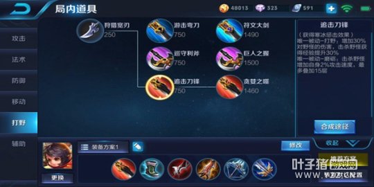追击刀锋:元芳出到2级打野刀即可,能够增加刷野收益及攻速就好。