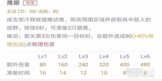 整体分析:一技能主动使用可以看到一定范围的视野,可以看到隐身单位,合理的使用可以防止被埋伏。被动效果是普攻三次可以造成额外伤害,增强成吉思汗的持续输出能力。