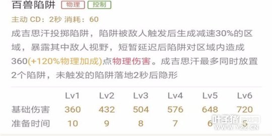 整体分析:二技能释放的陷阱可以获得一定的视野,命中敌人后,可以获得敌人的真实视野。但是对敌人造成伤害的可能是很小的。这个技能主要用来保证视野,提供安全的发育环境。