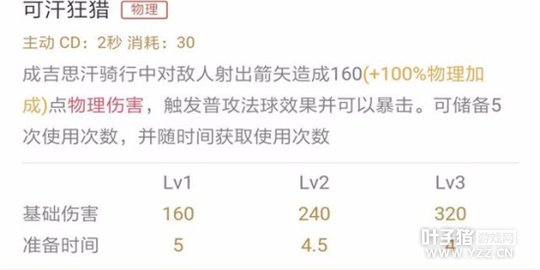 数值分析:该技能的物理攻击力加成较低,但是升级后可以获得不错的基础伤害。如果持续触发,这个技能提供的伤害也是很高的。