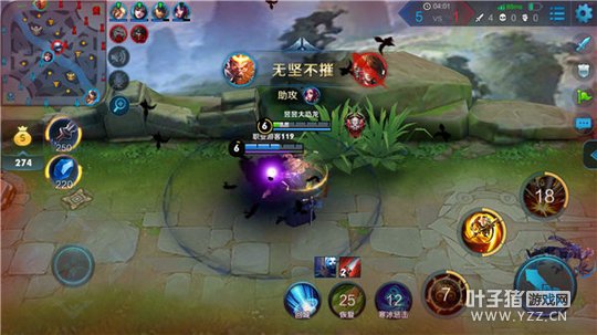 辅助进攻应以快速击杀为目的,无需考虑过多后续生存,快速完成三次强化普攻即可。敌方英雄在赶来支援的路径上,拖延时间会导致技能冷却期间被支援英雄反杀。