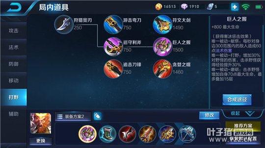 出装分析:巨人之握加速打野发育和提供一定持续输出量,同时提供较高血量加成保证一定生存,应在敌方英雄爆发力较高时选择。与贪婪之噬作用相似,但以攻速提升为辅助,敌方英雄擅长持久战时,可通过加速攻击提升吸血效率获得续航反制。抵抗之靴是生存的保障和对抗法师英雄的筹码。泣血之刃提供续航,减少回城次数并在拉锯战中保证一定优势。无尽战刃和宗师之力提升大量暴击率并优化伤害量,作为核心装备为孙悟空提供爆发力。破甲弓保证真实伤害平衡敌方物理防御出装,后期可对坦克英雄造成较高压力。
