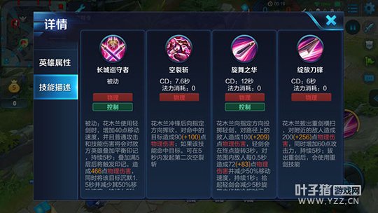 分析:双剑形态下二技能名叫旋舞之华,是一个远程消耗技能,在对战射手、法师这些远距离输出的英雄的时候,就可以先用二技能消耗敌人,一方面可以压制敌人的生命值,一方面可以减速敌人,还可以在敌人身上叠加被动技能的印记,当敌人身上的印记叠满或者即将叠满的时候,花木兰就可以用一技能接近敌人,近身输出,二技能还有一个效果,就是当花木兰拾起投掷出的双剑的时候,还能够减少二技能的冷却时间,让花木兰有了极强的追击能力。