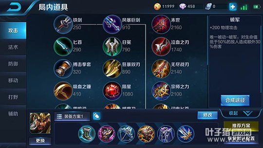 抵抗之靴+暴烈之甲+破甲弓+不祥征兆+魔女斗篷+破军
