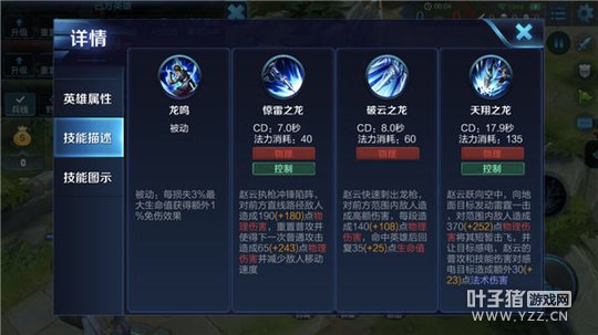被动-龙鸣:赵云每损失一定的生命值,都会额外获得免伤效果。