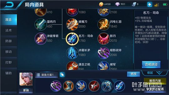 六神装:暗影战斧+急速战靴+破军+泣血之刃+破甲弓+名刀·司命