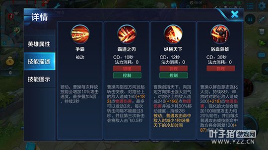 总的来说,曹操的单挑能力比较强,团战能力相对来说较弱,所以在实际使用曹操的时候,就需要将敌人各个击破。