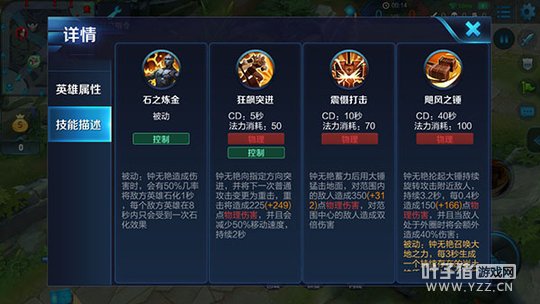 效果:钟无艳对敌方英雄造成伤害会有50%的几率将其石化,每个敌方英雄在8秒内只会受到一次石化效果。