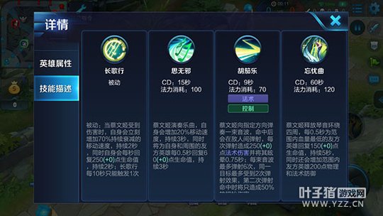分析:被动技能是蔡文姬生存能力的保障,在前期,蔡文姬可以利用被动技能的效果,配合队友无限消耗敌人,只要被动技能冷却时间结束就去前面给敌人压力,蔡文姬在前面扛伤害,射手在后面输出,敌人对蔡文姬造成的伤害很快就会被蔡文姬的被动技能回复满,几乎没有消耗,对线能力非常强大。当蔡文姬的生命值比较低的时候,可以主动上前被敌方的小兵或者野怪攻击,触发被动技能的效果来回复生命值。被动技能的回复效果在团战的时候作用不是很明显,团战时更有作用的是被动技能的加速效果,让蔡文姬的机动性更强,能够跟得上队友,不断为队友回复生命值。
