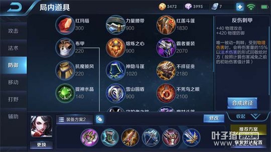 分析:第一件打野装巨人之握,因为阿轲不是一个依靠攻速打伤害的英雄,贪婪之噬并不适合她,巨人之握提供了大量生命值可以增加阿轲的生存能力;第二件抵抗之靴,提升了法术防御和韧性,可以降低阿轲受控制的效果,一定程度上降低了阿轲在团战中被控制集火的可能;第三件无尽战刃,虽然该装备并不能对阿轲的暴击率造成影响,但阿轲的被动特性可以把暴击率转换为暴击效果,配合无尽战刃装备被动的暴击效果提升,让阿轲能够打出非常高的暴击伤害,可以对敌方后期打出瞬间秒杀的效果;第四件破甲弓,提升了物理攻击和冷却时间,被动大幅增加阿轲的物理穿透,使阿轲在中后期打敌方坦克也会非常疼;第五件反伤刺甲,大幅提升了阿轲的物理防御,同时会将受到的物理伤害返还给攻击者,由于后期敌方射手装备逐渐成型,阿轲需要补充一定的防御能力,增加团战的抗击打能力;第六件破军,大幅提升阿轲的物理攻击,被动会对残血目标伤害进一步增加,这件装备是阿轲的核心装备。强化了阿轲的收割能力,使其在团战中能够轻松的打出“雪球效应”。