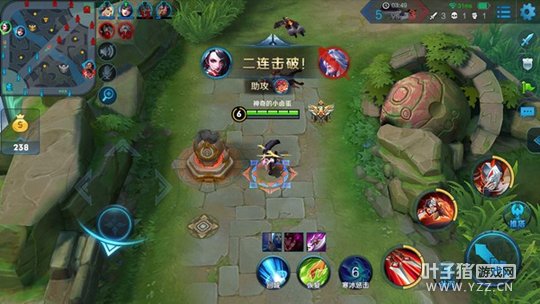 分析:阿轲对周围的敌人发动两次攻击,造成大量伤害。这是一个范围型输出技能,可以在移动中施法,让阿轲可以用走位调整位置,打出更高的伤害。该技能的冷却时间很短,可以在团战中频繁使用,是阿轲的主要输出手段。