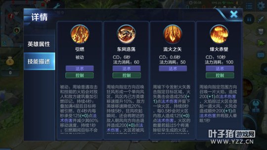 解析:周瑜的普攻和技能可以对敌人施加印记,叠加到四层会引燃敌人造成持续法术伤害和减速。被动加强了周瑜的伤害能力,可以通过不断叠加印记来消耗敌人。
