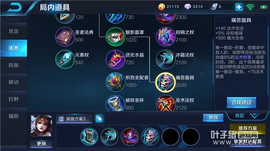 博学者之怒和痛苦面具能够为貂蝉增加大量的法术攻击加成,可以使貂蝉的法术攻击变得更加恐怖,而且博学者之怒的被动效果可以让貂蝉的法术强度提高一定百分比,从而可以让貂蝉的技能以及攻击可以对敌人造成极为恐怖的伤害输出,这个效果能够无论在中期亦或者后期,对貂蝉都有极大的帮助,痛苦面具可以提高貂蝉的最大生命,并减少貂蝉技能的冷却时间,同时痛苦面具还可以为貂蝉增加一定量的法术穿透效果,借助痛苦面具的被动效果,能够让貂蝉的技能命中敌人之后,在一段时间内对敌人造成相当可观的持续伤害,使貂蝉能够更好的去消耗敌人。