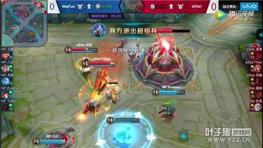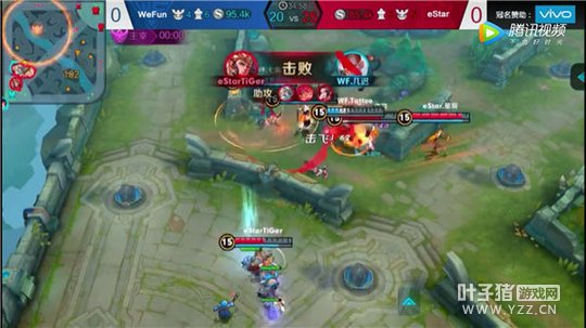 在王者荣耀KPL2017秋季赛eStar对阵WnFun第四周第四场比赛中,eStar的TiGer利用技能特性完美地配合队友,在关键时刻极限翻盘,赢得比赛的胜利。