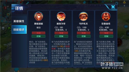 解析:一个具有双重效果的增益技能,首先是在正常状态下,让张飞每次的普攻可以为自己增加狂意,保证大招的释放速度;第二是在入狂后,他的技能伤害会造成减速控制,增强了他的持续输出能力。