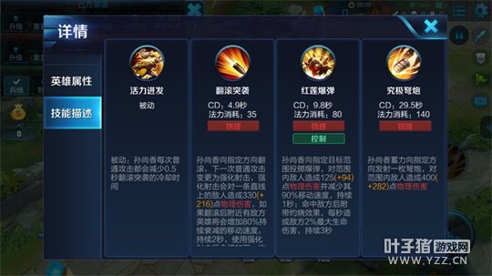 解析:一技能是孙尚香主要的位移和输出技能,对线中利用一技能强化普攻的射程,更好的消耗敌方英雄和塔外输出防御塔。同时一技能翻滚后如果周边有敌方英雄可以获得移速加成,更好的追击和逃生。
