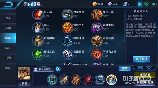 随着游戏接近尾声,敌方的肉盾可能会堆叠护甲或是技能自带的护甲,而此时就很需要有护甲穿透类型的道具,而一件防御装保证自身的生存能力也就尤为重要,但是这个版本贤者的庇护有着一局只能使用两次的限制,所以在选择上就需要稍加斟酌了,也可以用不祥征兆或是魔女斗篷代替。
