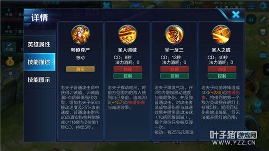 一技能-圣人训诫:老夫子朝前方挥动手中的戒尺,将敌人拉至自己身前,对目标造成物理伤害与减速效果。