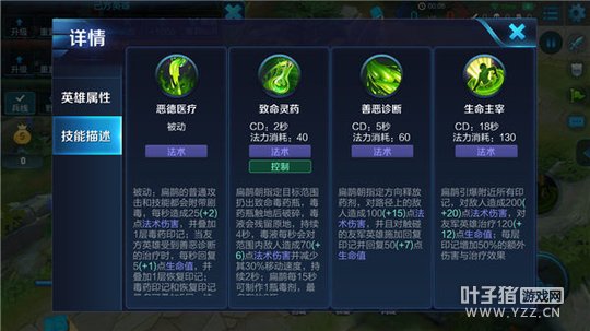 解析:扁鹊的二技能是其主要输出技能,也是其快速叠加印记的重要技能,大大提高了扁鹊的作战能力,使得扁鹊击杀敌军更加容易,消耗敌军能力也有了很大强化,并提高了扁鹊的个人英雄作用,且二技能可充能使用,释放次数多,技能加点收益大,充能时间较短,适合做主要成长技能使用,因此主点二技能。扁鹊的二技能是其消耗敌军时使用的主要技能,也是其为友军恢复生命值的根本技能,且能叠加印记层数,但叠加层数较少,不容易命中,且扁鹊是一名输出型的法师英雄,并非辅助英雄,没必要优先升级恢复队友生命值的技能,因此副点一技能。扁鹊的大招是其主要输出技能,也是其打团时使用的重要技能,是扁鹊英雄特色的根本体现,使得扁鹊的伤害带有了很大的爆发性,并能为扁鹊及其友军恢复生命值,大大提高了他们的作战能力,是团战得以胜利的关键,十分重要,因此有大招点大招。