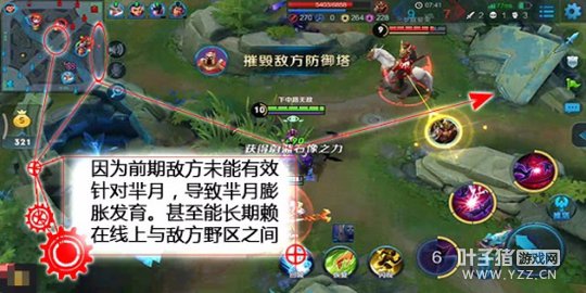 之后羋月便只需要安心的发育,而如果敌方的上单英雄守塔过于强势的话羋月也可以将目标转移到敌方的蓝野区,在中期整体装备有了一定的成型后羋月的单挑能力是无敌的,但是在入侵的过程中需要时刻注意敌方的动向,如果敌方的蓝野区或者边线上有多人存在的话羋月单人入侵显然是很危险的,但是如果己方队友在对上路施压且敌方已现身多人防守的话那么下路以及整个敌方的蓝野区羋月都将畅通无阻,毕竟在中期敌方想依靠单人之力抵御羋月的入侵是不可能的。