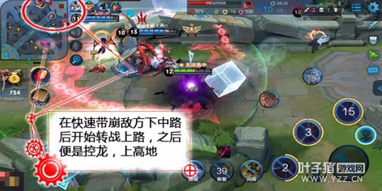 在此期间包括敌上单想强行守塔羋月都可以进行适当的塔下消耗,而如果敌方血量过残甚至可以利用一技能进塔二技能抽中敌方英雄之后利用大招的无敌效果进行收割,当然了,要是对象是老夫子那么还是需要从长计议的(会心一笑)。