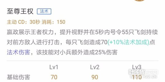 加点解析:主二可以大量提高嬴政的基础法术攻击力与移动速度,而一技能较多情况下则用于清理兵线与限制输出,所以相比之下主二技能的收益会大于一技能。