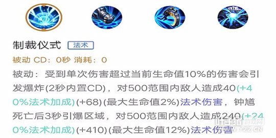 技能解析:被动技能是钟馗最好的保护技能,可以在对线敌方输出位时直接将敌方钩到身边,如敌方反击就会触发钟馗被动消耗敌方血量,并且在死后也会对敌方造成法术伤害。