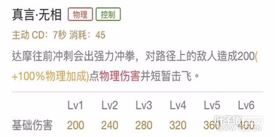整体解析:该技能可以进行位移,且对位移路径上的敌人造成伤害和击飞,该技能可以跨越地形,提高达摩灵活性。短暂击飞的软控制效果作用强大,尽量让一技能可以击飞敌人,而不只是单纯用来做位移使用。